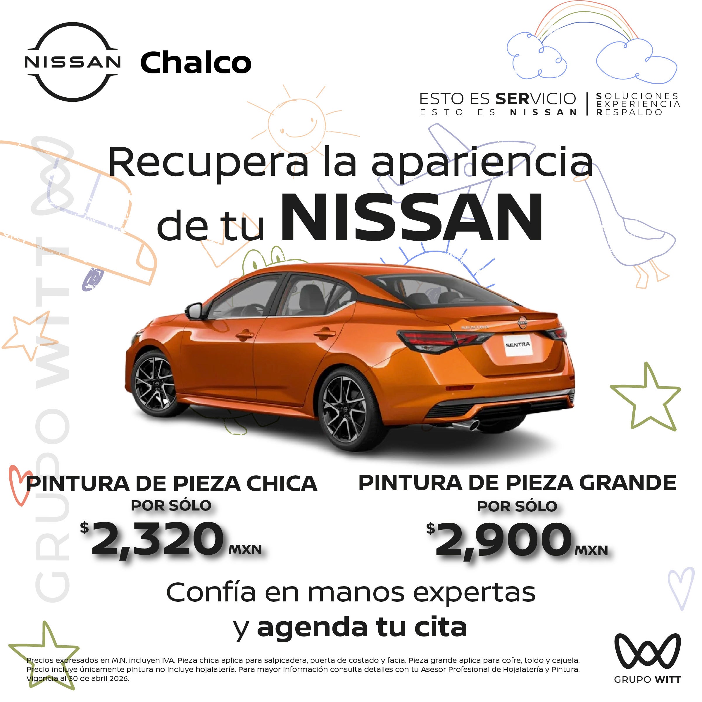 Precios expresados en M.N. incluyen IVA. Pieza chica aplica para salpicadera, puerta de costado y facia. Pieza grande aplica para cofre, toldo y cajuela. Vigencia al 30 de abril 2026. Precio incluye únicamente pintura no incluye hojalatería. Para mayor información consulta detalles con tu Asesor Profesional de Hojalatería y Pintura.