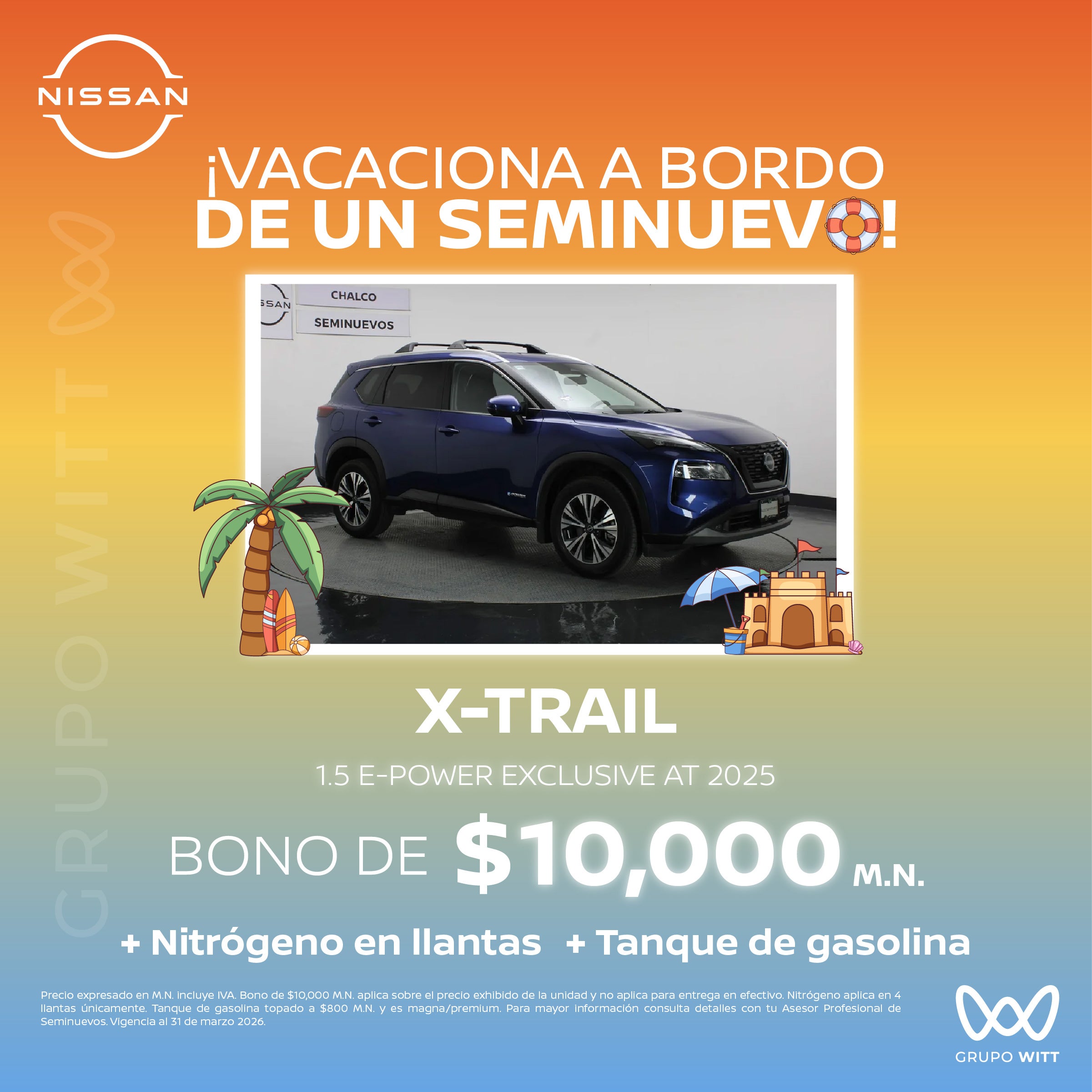 Precio expresado en M.N. incluye IVA. Bono de $10,000 M.N. aplica sobre el precio exhibido de la unidad y no aplica para entrega en efectivo. Nitrógeno aplica en 4 llantas únicamente. Tanque de gasolina topado a $800 M.N. y es magna/premium. Para mayor información consulta detalles con tu Asesor Profesional de Seminuevos. Vigencia al 31 de marzo 2026.